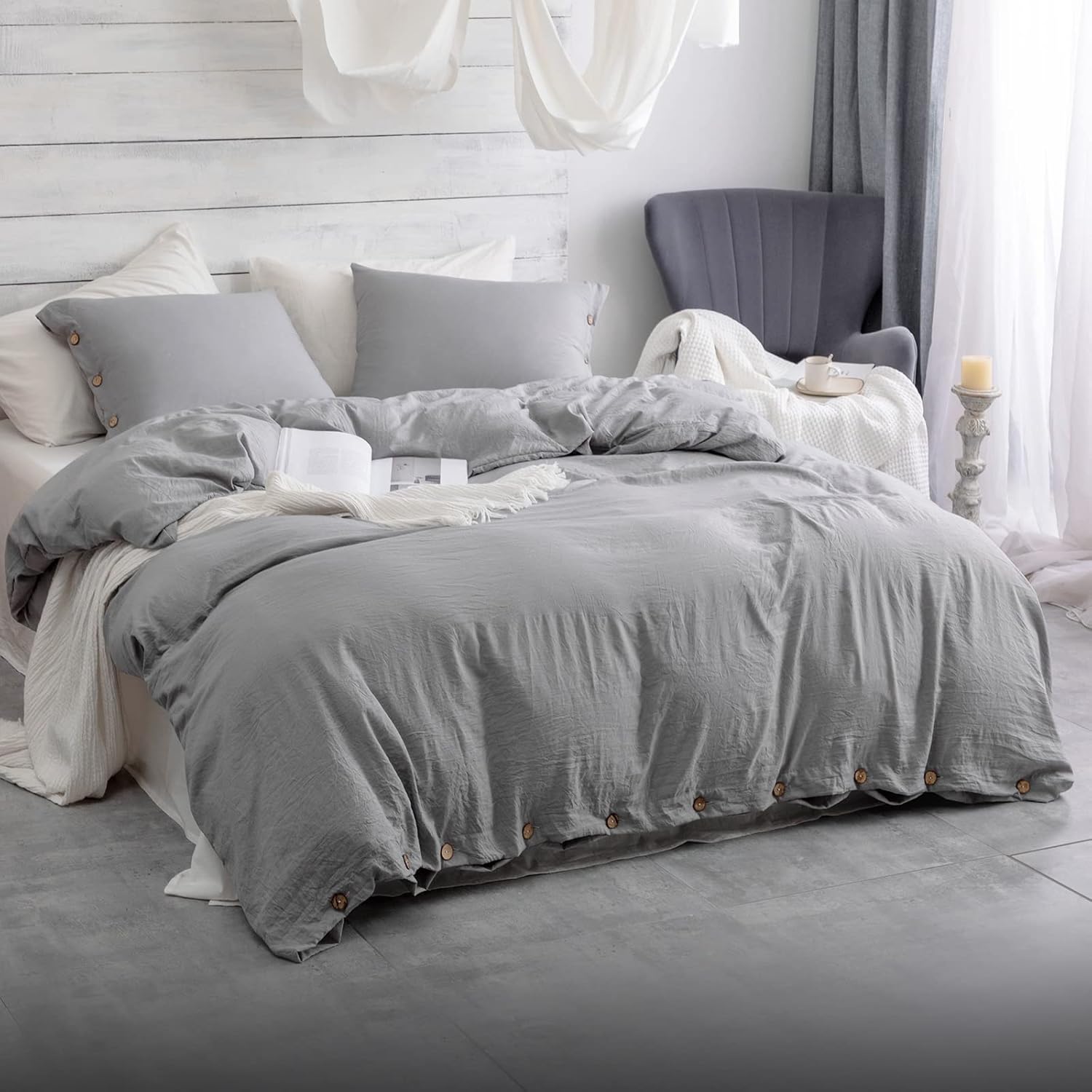 Amazon Com Nestl Light Grey Duvet Cover King Size Soft King Duvet Cover Set 3 Piece Double Brushed King Duvet Covers With Button Closure 1 King Size Duvet Cover 104x90 Inches And