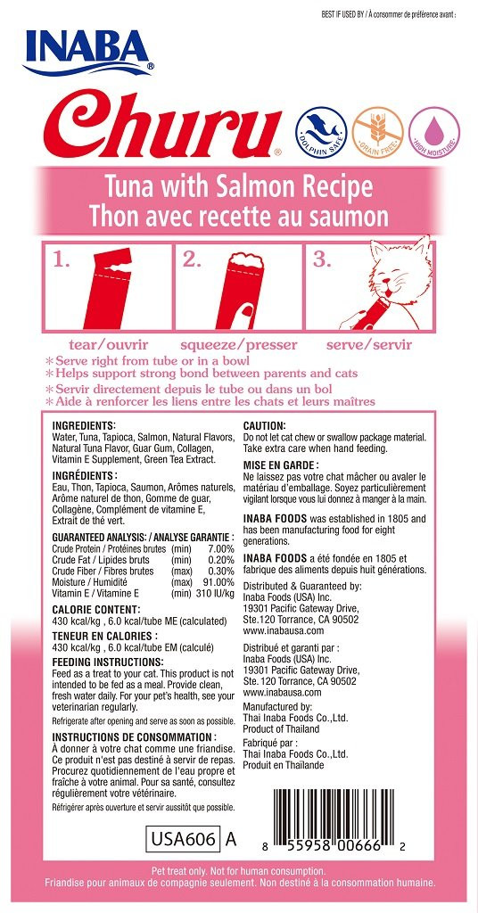 Inaba Churu Puree Tuna With Salmon Recipe Cat Treat 4x14g